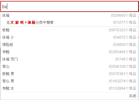 首先,搜索栏的位置很重要,打开京东首页,搜索位于首页顶部的中间位置,很明显突出。其次,网站默认一个搜索关键词,引导用户进行点击搜索。随着网络技术的不断成熟与发展,现在的网站搜索一般都支持根据拼音自动下拉完成功能。象京东、天猫等同时支持简拼,并且把重点推荐的商品在下拉中展示。