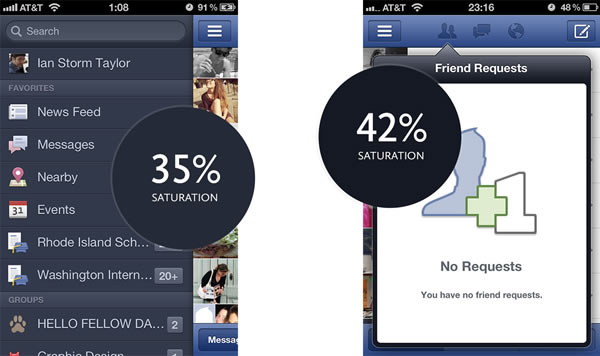 再来看看老版的Facebbok界面,为什么Facebook移动界面看起来这么赞?因为它们的灰色,稍微掺杂了一点Facebook标志性的蓝。