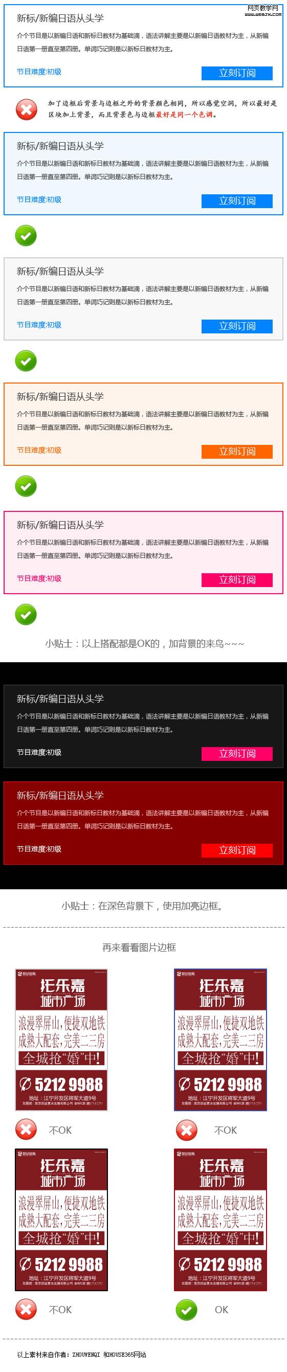 1) 当你不知道边框要用什么颜色的时候,就用和背景相似的色系。