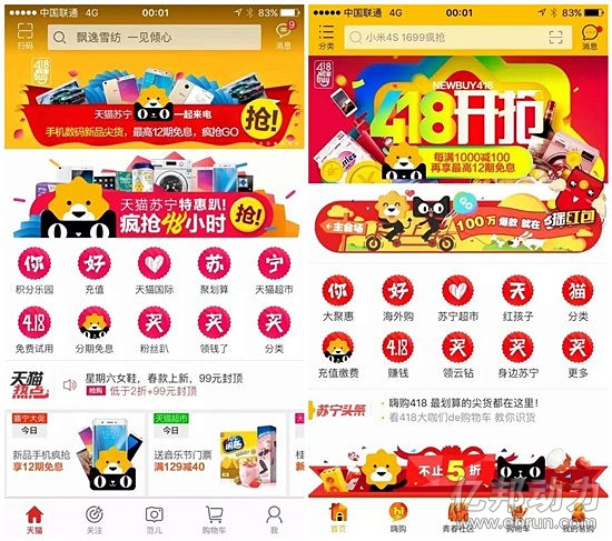 4月18日消息,今日,阿里巴巴和苏宁易购合造的“New Buy 418”购物节开幕,亿邦动力网了解到,本次苏宁和天猫将销售数据统一,首次对部分商品进行了联合采购,以节约采购和管理成本。