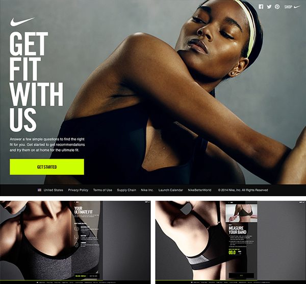 例如:Nike为打造舒适的购物体验,每一页用简单的大标题和背景相结合,让女人能很轻松的找到她们的SIZE,即简洁又直白;