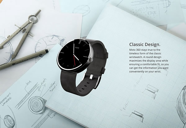 这是摩托罗拉首次杀入智能手表市场,其Moto 360是公司的旗舰产品,因此一定要以一种创新、有趣地方式展示出来。滚动登陆页你会看到以动态UI展示的手表装配过程。其中比较讨巧的一个元素,就是手表图片上显示的是当前实际的精确时间。