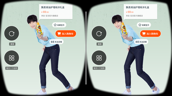 在5.20这天,阿里请来杨洋和迪丽热巴担任“VR男朋友”、 “VR女朋友”。在淘宝手机客户端进入“我的VR男友”或“我的VR女友”活动页面,配合VR头戴设备就能身历其境地听杨洋和迪丽热巴喊你起床。而VR播放器的融入场景的UI系统对接淘宝交易体系,出现的产品可以支持收藏、购买和店铺一键关注,为消费者带来更多新鲜体验。