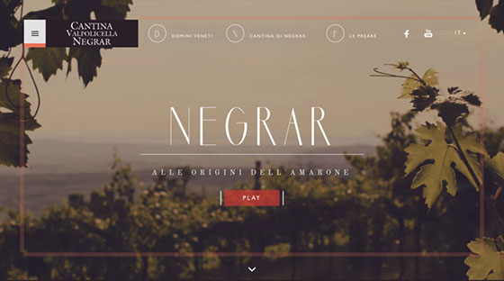 2.Cantina Valpolicella Negrar网站的文字主要采用了衬线字体,深色背景上的细长字体给人优雅精致的感觉,完美地诠释了产品特色。
