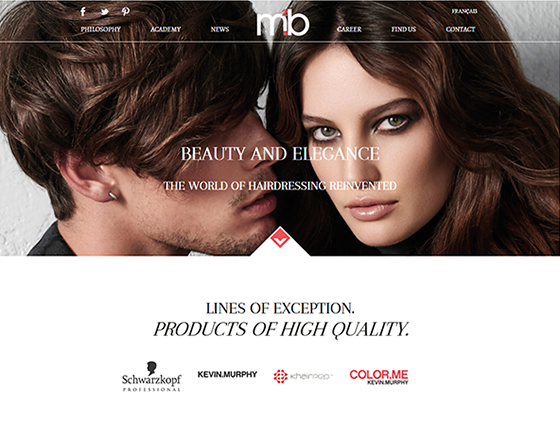 8.这个页面给你什么感觉,美丽、迷人、时尚? M2B网站的图片正是给用户传达这样的感受。不管是导航还是banner图里面的文字,都采用这种美丽的衬线字体,与图片所表达内容相得益彰。而简洁圆润的logo图在整个页面中看起来既醒目,却又不显得突兀。