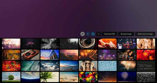 点选下方的「Browse Image」来浏览网站提供的图库,点选即可选择使用,或者你也可以自己上传图片。要记住的是 Unique Gradient Generator 只会选择图片里的小范围,然后放大显示,重要的是找到你所需的背景「色系」而不是图案。