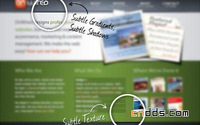 OnWired网站应用了这些设计技巧,显而易见,他的设计作品效果是很棒的!自始自终OnWired网站设计在应用渐变、投影、质感这方面是恰到好处的。我也特别喜欢设计师设计的这些。