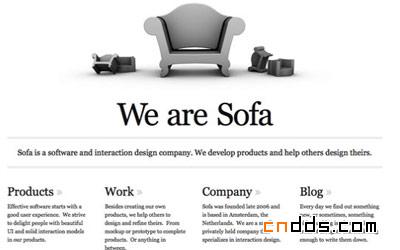 沙发采用抽象、美观、简约的方法。通过使用无背景或杂乱的图像,给浏览者的空间是流畅、舒服的。