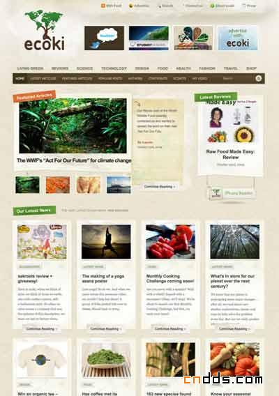Ecoki漂亮的网页布局显而易见采用的是4列、2行布局,同时幻灯片、缩略图、最新的审查也是采用相同的方式。