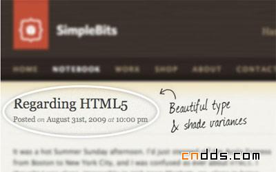SimpleBits网站在应用各种对比字体引导浏览者的注意力方面做的很棒。字体对比可以采取不同字体对比、各种颜色对比、字体大小对比等形式。