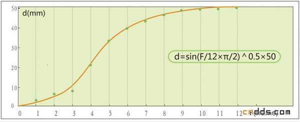 d表示距离,总大小是屏幕的宽度。F是帧数,按30fps这个过程大约0.4秒。我们可以看出,趋势上是一个先加速后减速的过程,它的背后定对应某一函数曲线,而一般这种运动曲线可以应用三角函数sin实现,但这里它更像是sin的平方根(这个猜测应该不准确,还请了解iPhone SDK的同学指正)。