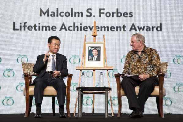 11月29日,十六届福布斯全球CEO会议在印尼雅加达举行,大会颁布马尔科姆?福布斯终身成就奖,万达集团董事长王健林获奖,成为历年唯一获该奖的中国大陆企业家。福布斯传媒集团总裁史蒂夫?福布斯为王健林颁奖,双方围绕“迎接挑战”的大会主题展开了一场精彩对话。