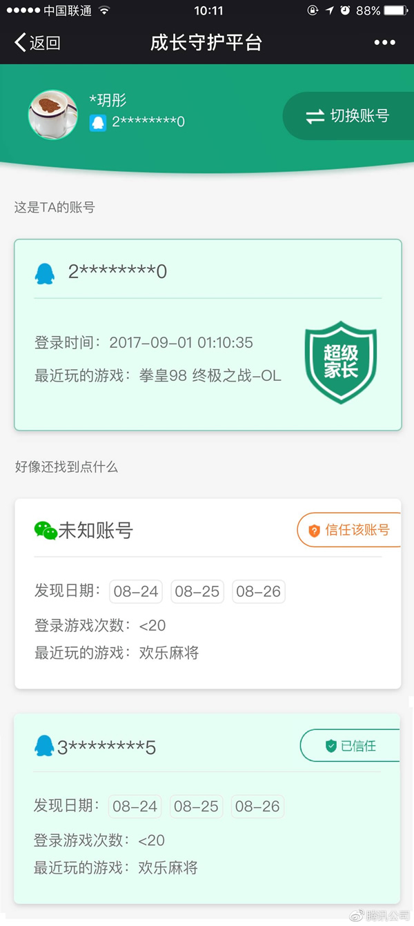 9 月 5 日消息 目前,暑期已经结束迎来 新的学期,为了有效防止孩子们沉迷于游戏,腾讯成长守护平台近日正式上线了“查小号”功能。