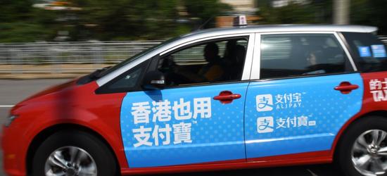 当天,蚂蚁金服举办了支付宝与香港的士的合作仪式。首批接入支付宝的的士车身上贴着“香港也用支付宝”的标语,从香港大球场出发开始运营。