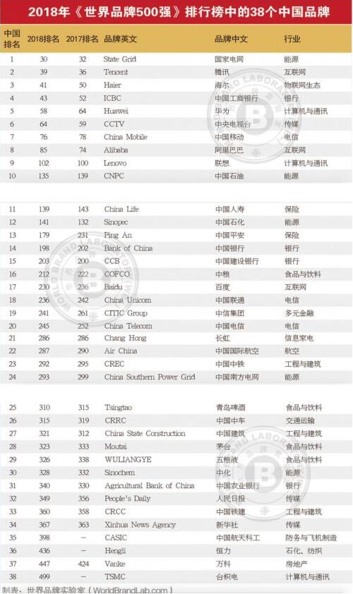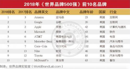 12月19日 消息:据TechWeb报道,今日,世界品牌实验室发布了“世界品牌 500 强”榜单。据榜单显示,亚马逊、谷歌、苹果排名前三。此外,中国有 38 个品牌入选。