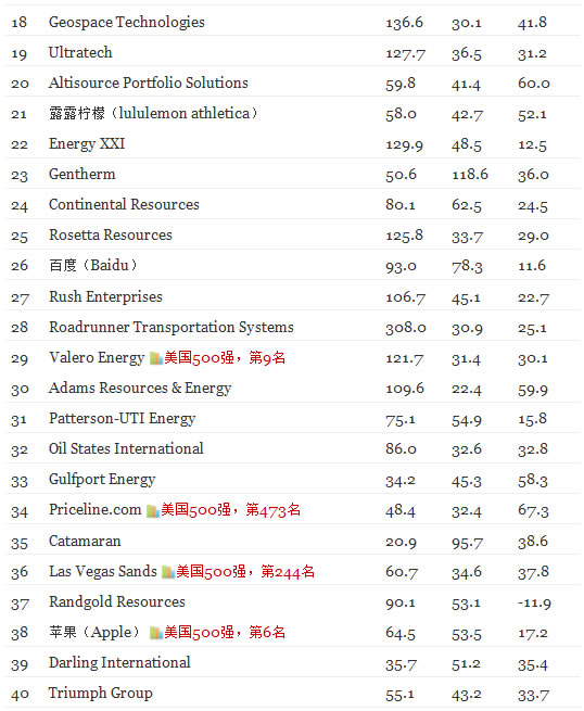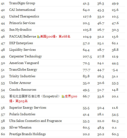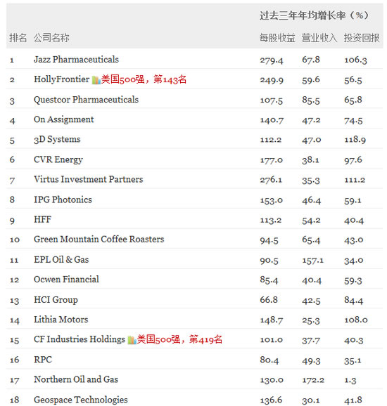 这份以“增长”为考核指标的榜单由《财富》杂志每年发布一次,锁定在美国上市交易的所有公司,根据其近三年来的营收增长率,每股收益增长率以及三年期年化总体回报率进行排序,每年的榜单上都会涌现出一批新秀,从中可以看出哪些企业欣欣向荣,在当前的经济环境下正取得成功。