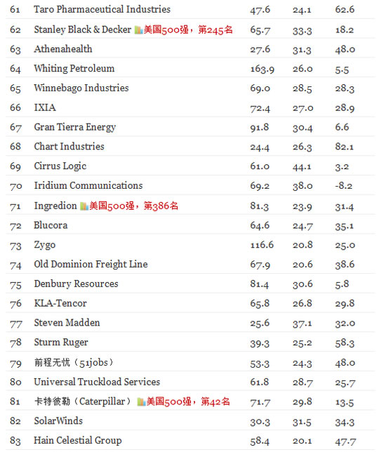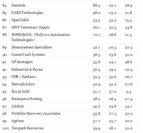 百度连续第三年入选该榜单,但排名由去年的第3位降至第26位,百度的三年年均投资回报增长率由去年的56%降至12%。同时,前程无忧的排名降至第79位。网易位列第93位。