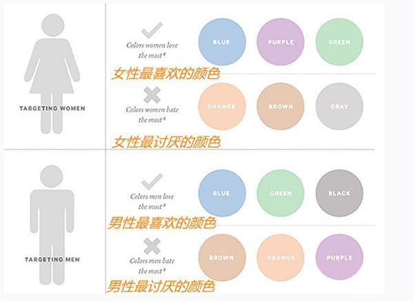 如果你的销售目标是针对男性顾客的话,那么网站就一定要远离紫色、橙色和棕色。与之相反的是,选择蓝色、绿色和黑色。蓝色、绿色和黑色这些颜色是传统意义上的男性色彩。然而,让人稍感意外的是一些男性受访者并没有把棕色视作喜欢的颜色。