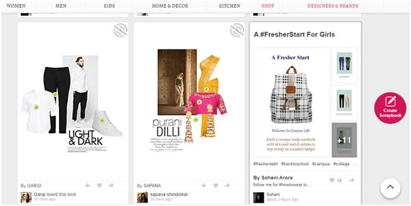 进入这个网站,你会感觉像进入另一个在线目录,而最值得注意的是,这些在页面中展现的产品都是用户挑选出来的。人们只需注册成为Limeroad的会员,就可以使用网站的“Scrapbook(剪贴薄)”功能,利用网站中的商品在主页中创建自己与产品的故事。Limeroad还会举办 “剪贴簿” 比赛,鼓励大家参与。