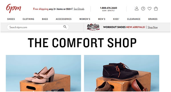6 PM也采取了联盟营销策略,但该店最大的亮点是为购买两件以上产品或买满50美元的消费者提供免费送货服务。6 PM并没有为消费者提供24小时的客户服务,但其客户支持联系方式非常明显,方便有需要的客户与其联系。