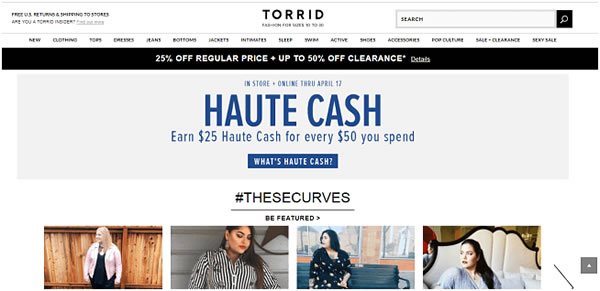 与寻常服装网站不同,Torrid并不没有雇用那些纤瘦的模特来展示产品,相反他们宣扬“Plus Size Fashion大码时尚服装”,雇佣体型较胖的模特拍摄产品照片,展示服装如何帮助胖人获得自信。Torrid还与其他网店一样,举办买家秀比赛,鼓励身材肥胖的客户展示自己,相较于普通服装电商,这一策略似乎对Torrid的销售更加有帮助。