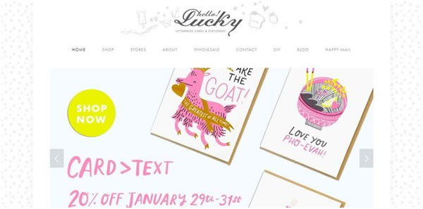 Hello!Lucky的网站设计跟其品牌名一样,可爱而时髦。用户进入其网站后,可以直接在主页中浏览最佳产品照片。
