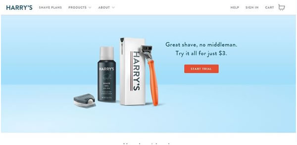 Harry's在其主页展示了其工厂的相关信息,访客可以在主页中滚动了解,给人以一种专业感。与普通剃须刀品牌不同,Harry's通过为客户提供定制化的产品来“绑定”他们。