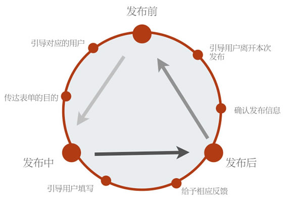 从中我们可以发现,似乎发布前和发布后这两个流程,比较容易被忽略。而过程中的设计点具体应该如何做呢?作为用户出发看看吧。