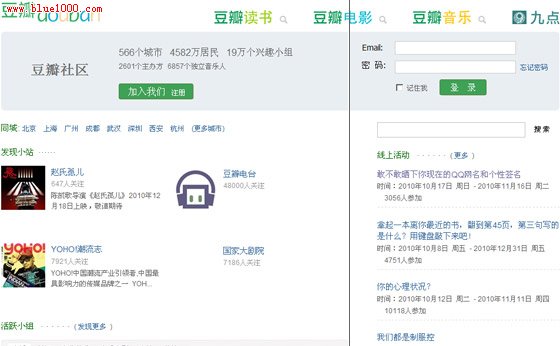 豆瓣社区首页的设计左栏宽度是590px,整体版面的宽度是950,两者之间的比例是0.621,非常之接近黄金分割。