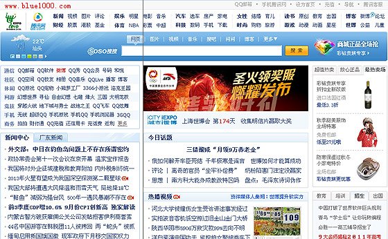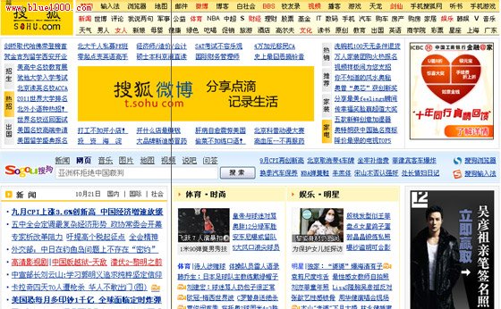 搜狐门户首页的设计右栏宽度是626px,整体版面的宽度是950,两者之间的比例是0.659,与腾讯网布局方式非常相似,但这个比例几乎是九宫格排版。