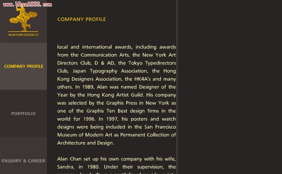 香港最著名的陈幼坚设计公司网站,整体版面的宽度是648,左侧主要内容占的宽度是408,两者之间的比例是0.63,看得出陈幼坚对8这个数字的喜爱。