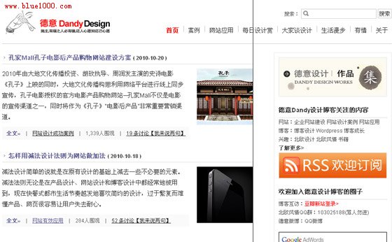 现在不少的博客在比例分配上面也采用了黄金分割,德意博客的主体宽度是900,左侧主栏宽度是580,两者之间的比例是0.64。你也可以观察一下自己的博客布局之间的比例是怎么样的,如果不知道如何布局,黄金分割是一个最安全选择。