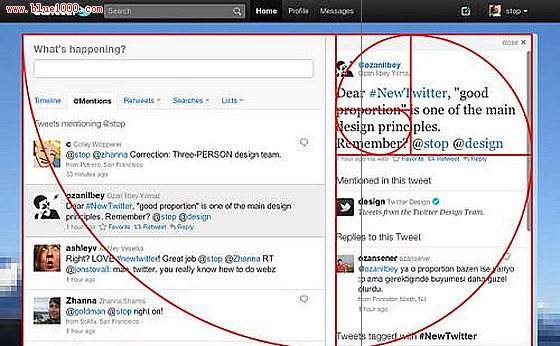 将黄金分割使用得最极致的要数Twitter的网页设计,惊为天人的完全黄金矩形布局,Twitter创意总监道格·伯曼追求完美的性格可见一斑。