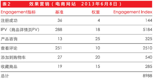 不同类型的营销选用的具体指标和权重的安排肯定不一样。