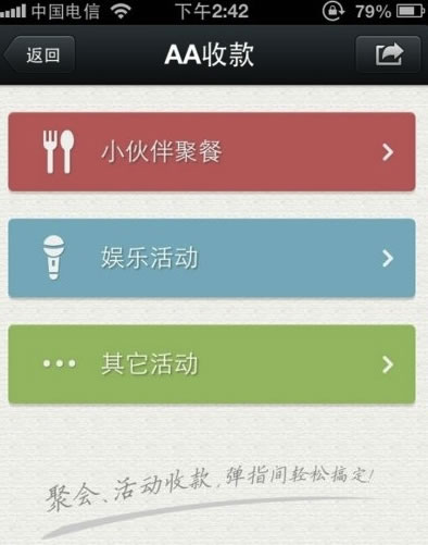 正在积极部署线下支付的支付宝钱包近期将推出一项AA收款的功能,用户在聚餐、娱乐的时候,一个人买单之后,可以使用该功能向其他人收款。