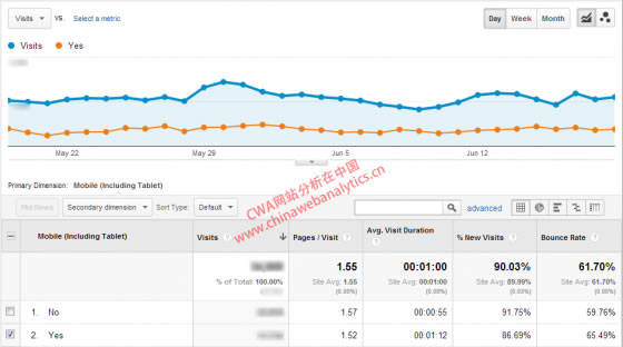 是否可以看出一个大概的比例,看起来mobile的流量占到了全站流量的三分之一左右!这个比例相当令我吃惊。