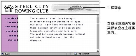 例如,最常见的框架布局在顶行有一个框架(框架中显示公司的徽标),并且在底行有两个框架(一个导航框架和一个内容框架)。此布局要求嵌套的框架集:一个两行的框架集,在第二行中嵌套了一个两列的框架集。
