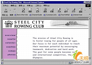 但是,框架的设计可能比较复杂;并且在许多情况下,您可以创建没有框架的 Web 页,它可以达到使用一组框架所能达到的许多同样效果。例如,如果您想让导航条显示在页面的左侧,则既可以用一组框架代替您的页面,也可以只是在站点中的每一页上包含该导航条;下图显示了具有类似框架布局的页面设计,但在设计中并没有使用框架。