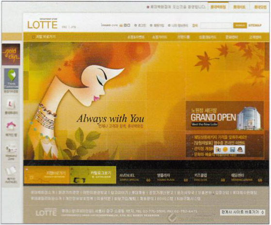 网页的配色很成功,黄色、芝色和绿色很自然地融合在一起.配上灰色的背景色,给人宁静、青春的感觉。
