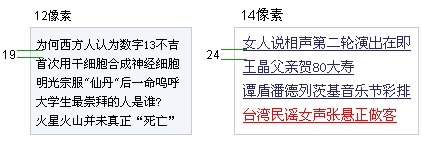 而遇到列表或大段文字,还需要注意行距问题。例如12号宋体时,我们一般使用18-20像素的行距。14号宋体通常使用22-24像素的行距。