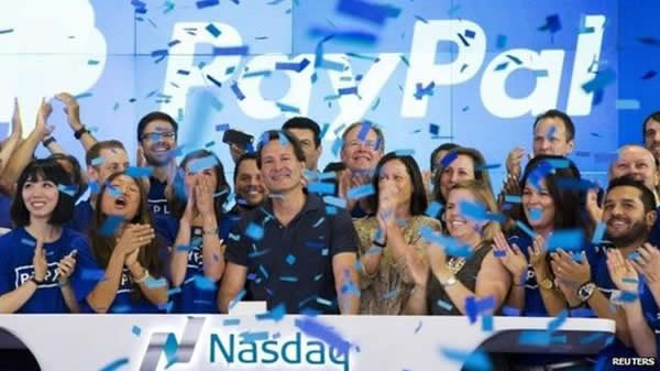 7月20日,PayPal公司宣布正式完成与eBay 集团的分拆工作,以独立公司的形式在纳斯达克公开上市,股票代码为“PYPL”,公司市值达508亿美元。与此同时,随着PayPal的分拆,eBay的市值则降至350亿美元左右。