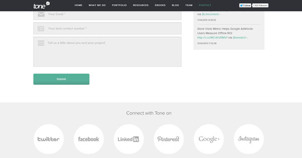 我最喜欢的英国创意机构非Tone莫属,无论是它的作品或者是作品集网站。它的联系页使用定位他们办公室的完整地图和动态联系表格。