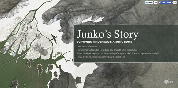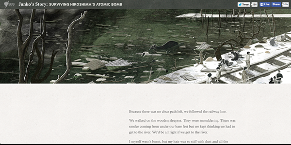 这个网站也是SBS旗下的,Junko’s Story 借由信息图来讲述故事,展现了广岛核弹爆炸之后幸存者们的悲惨遭遇。由于内容的严肃性,网站的展现形式采用了传统的图文混排,不过整体配色和风格上依然采用的是现代的设计。