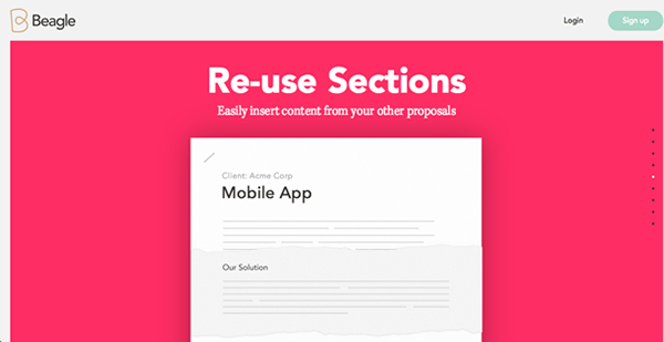 这个页面是针对Podio 的工具Beagle 而设计的长滚动页面。设计师将内容分割成屏幕大小的分页,用来展示不同的内容,动效被拿来衔接页面,将用户的吸引力从一个分页转移到下一个分页。