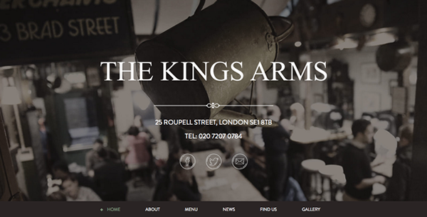 并非所有的长滚动页面都是华而不实的,伦敦的The Kings Arms 酒吧就采用了固定背景设计,页面之间的切换也并未采用华丽的过度动效。