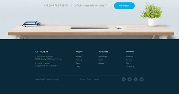这个在设计中属于老生常谈了,当你有大量信息要处理时,简约风格是不二选择。在页脚设计上,你要保证排版干净,元素有序,空间通透不拥挤。