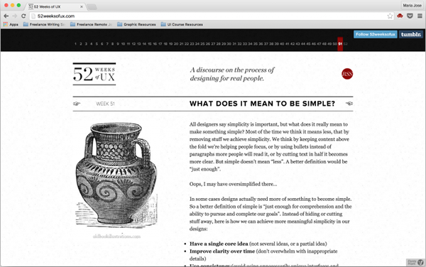 52 Weeks of UX,单看名字你就知道这是一个全年无休的用户体验相关的博客,它的页头足够简单也足够鲜明,你很清楚你接下来阅读的内容一定是UX相关的文章。