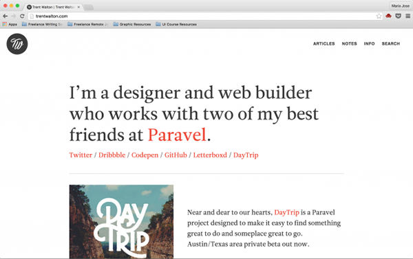 Trent Walton 的网站就是这么做的,在标题的选取上更加类型化,这样一来,网站上不同文章在标题上有明显的区分,也更加容易吸引细分用户。