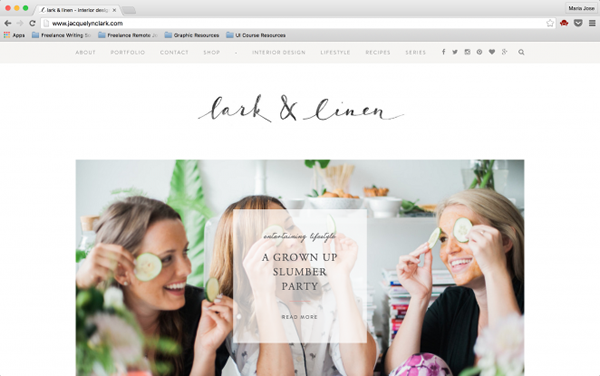 Lark and Linen 是一个室内设计的博客,设计师在页头标题中选用了一种手写字体,并为字体叠加了富有质感的纹理,这和博客的主题显得非常的贴合。
