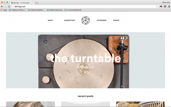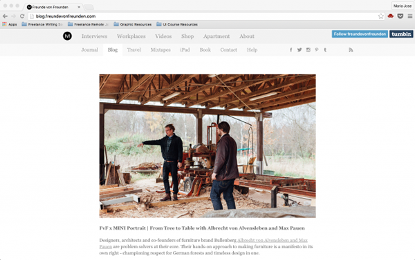 Freunde Von Freunden是一个专注创意工作者专访的博客,它的名字是德语,意为“朋友的朋友”。网站设计风格极简而有品位,这种贯穿始终的风格在页头上体现出来,给人感觉也非常不错。